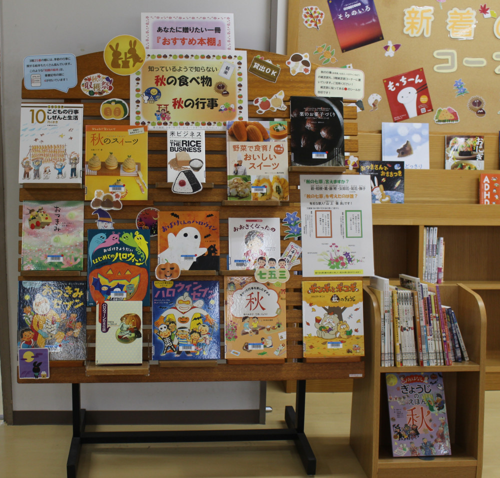 また、お月見や七五三、ハロウィンなど、秋の行事の由来などが掲載されている本も展示しています